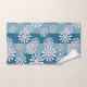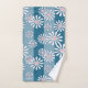 White chamomile flowers on striped blue background bath towel set