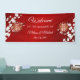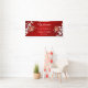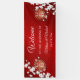 This Chinese wedding banner features pretty white cherry blossoms and gold double happiness symbols on a shimmering ruby red background. Many matching products available.