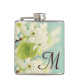 White Cherry Blossom Flower Monogram Whiskey Flask