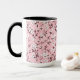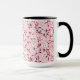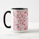 White cherry blossom branches painted with watercolors and ink on a pink background