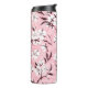 White cherry blossom branches painted with watercolors and ink on a pink background