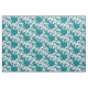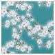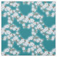 White Cherry Blossoms Floral Pattern Teal Fabric