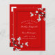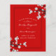 An asian / japanese themed, original illustration of modern and elegant white cherry blossoms spring flowers with black branches on a red background in a classic and elegant frame layout.
