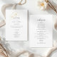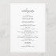 This chic and stylish wedding program features a contemporary set of fonts and script elements in black, alongside delicate floral outlines in faux gold against a crisp white background.