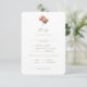 This white wedding RSVP card features a floral blush rose bouquet, contemporary set of fonts in olive green as well as optional wedding website address at the back.