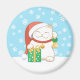 White Christmas Cat in a Red Hat Magnet