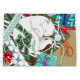 A white cat has decided to sleep right in the middle of all of the Christmas wrapping supplies. Never get up for a minute with a cat!
