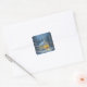 A charming church, nestled in a snowy forest landscape, glows warmly from its illuminated windows, creating a beautiful contrast with the cool, tranquil surroundings