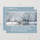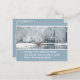 Christmas postcard features a park blanketed in newly fallen snow, trees glistening in their ermine coats of white around a lake whose mirror-like surface reflects back all that beauty. All the text is customisable so that you can personalise the card.
