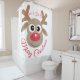 White Christmas Cute Cartoon Reindeer Red Script Shower Curtain