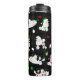 Cute Christmas poodle dogs in festive holiday outfits. Santa hats, antlers, sweaters, ornaments and candy canes thermal tumbler.