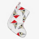 Deck the halls with this fun and festive skull print Christmas stocking featuring artwork by Buttercup's Clothing and Collectables. Holiday stocking features a pattern of skulls wearing Santa Claus hats against a white background . Ho ho ho!