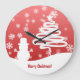 White Christmas Tree and Snowman Large Clock