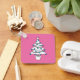 An illustration of an elegant chic white Christmas tree with plenty of blue hanging balls in pink background. This design is for people who loves Christmas, giving gifts and giveaways.