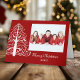 Customise the elegant White Christmas Tree on Red Christmas Photo Greeting Card with your own name and family picture. Feel free to change the text, font and background colour to suit your needs. This classy custom holiday photocard features an intricate and festive white Christmas tree design on a red background. Available as a printed card for mailing or as a digital download for easy sharing digitally online.