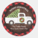 White Christmas Tree Truck Wreath Plaid Monogram Classic Round Sticker