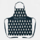 This modern and elegant apron features white Christmas Tree silhouettes and little white snowflakes. The customisable caption at the waistband reads Merry Christmas