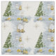 Sparkling Gold & Silver tree decorations surrounded by sage-green festive foliage with freshly fallen snow in a winter wonderland repeat fabric print