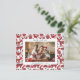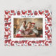 Spread joy and warmth this holiday season with this whimsical family photo Christmas postcard featuring a vibrant red and blue Scandinavian-inspired border of reindeer and other forest animals on a white background. The charming folk art pattern adds a playful touch to your family photo, capturing the cosy magic of Christmas traditions.