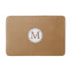 This minimalist bath mat has a white circle banner that is framed with a thin green line. At the centre is your monogram in brown. The banner is placed on a matching solid colour brown background. This bath mat matches the Green and Brown Pampas Grass Monogram shower curtain and bath towel set in our store to make a complete bath decor look.