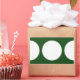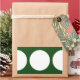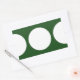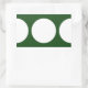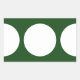 This bold geometric pattern features a white circle in the centre and two white half circles on the edges of a green background.