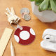 This bold geometric pattern features a large white dot in the centre and two white half circles on the edges of a red background.