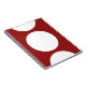 This bold geometric pattern features a large white dot in the centre and two white half circles on the edges of a red background.