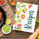 A personalised recipe book with citrus fruit pattern featuring colourful oranges, lemons, tangerines and grapefruit.