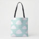 White Clouds Pattern Personalised Aqua Tote Bag