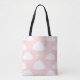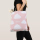White Clouds Pattern Personalised Blush Tote Bag. Cute and whimsical all over print tote bag featured white clouds on blush background. This tote bag can be personalised, perfect as a baby shower favour bags or as a gift.