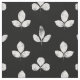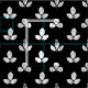 An elegant and sophisticated simple pattern of a field of white clover in a stamped technique on a black background.