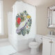A Beautiful Tropical Shower Curtain With A White Cockatoo.