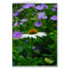 White Cone flower, purple flowers and moth