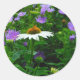 White Cone flower, purple flowers and moth Classic Round Sticker