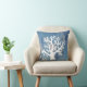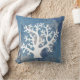 The silhouette of coral in white against an abstract background in all the colours of the ocean. The back has the same abstract background. This is the perfect throw pillow whether you have a beach house or just want a bit of the beach in your home.