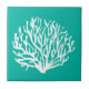 White coral reef custom beach theme ceramic tile. Personalised tiles with ocean life design. Stylish decor for beach home, lake house, pool area etc. Custom kitchen and bathroom wall decorations. Create your own trendy backsplash. Available in small and large sizes. Turquoise blue or custom colour background.