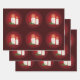 White Cosy Christmas Candles On Red With Holly Wrapping Paper Sheet