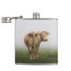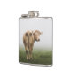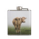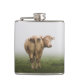 White Cow Bull looking Back in a Foggy Field Hip Flask
