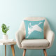 part of the ocean theamed decore white crane on teal blue pillow on one side and teal and white strip on back.