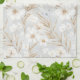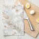White Cream Flowers Blue Butterflies Bridal Shower Tea Towel