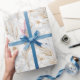 White Cream Flowers Blue Butterflies Bridal Shower Wrapping Paper