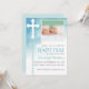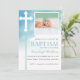 White Cross Blue Watercolor Photo Baptism Invitation