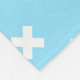 White cross stitches on baby blue fleece blanket
