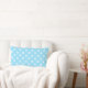White cross stitches on baby blue lumbar cushion