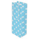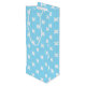 White cross stitches on baby blue wine gift bag