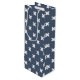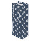 White cross stitches on blue-gray wine gift bag