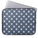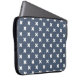 White cross stitches on blue-grey laptop sleeve