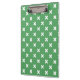 White cross stitches on green clipboard