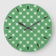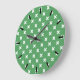 White cross stitches on green large clock