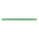 White cross stitches on green satin ribbon